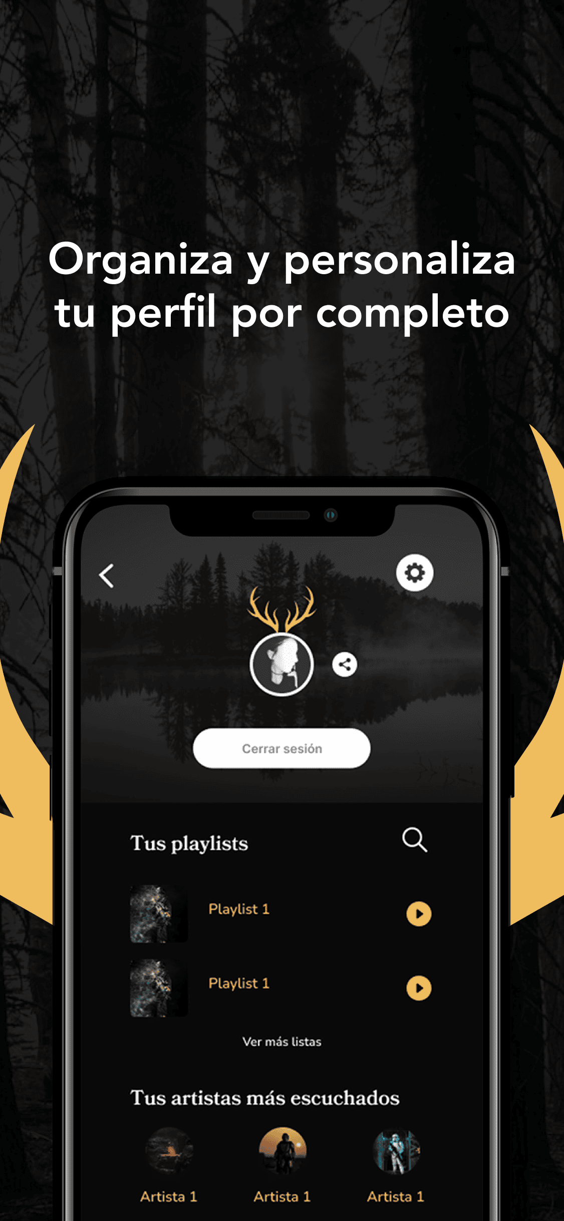The logo consists of a typographic part under an isotype representing the horns of a deer, inspired by a deer because it is considered a legendary animal and related to forests and other areas commonly known as “epic”.